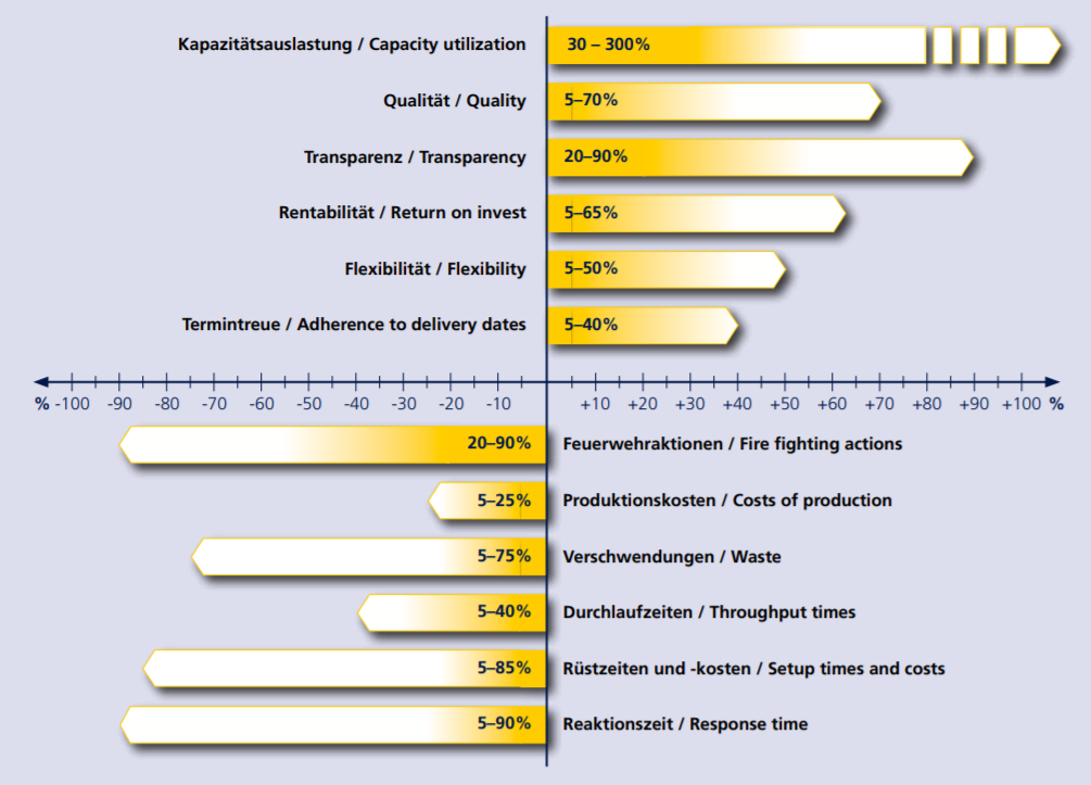Ihre Maschinen bringen Profit, wenn sie produzieren – und nur dann. Andererseits verstreichen meist über 2/3 der Durchlaufzeit in der Produktion ungenützt. Der Grund: Unproduktive Warte-, Stillstands-, Transport- und Liegezeiten. Produktionsstopps und langwieriges Einrichten oder Umrüsten der Maschinen kosten bis zu 70% Ihrer Produktivität.